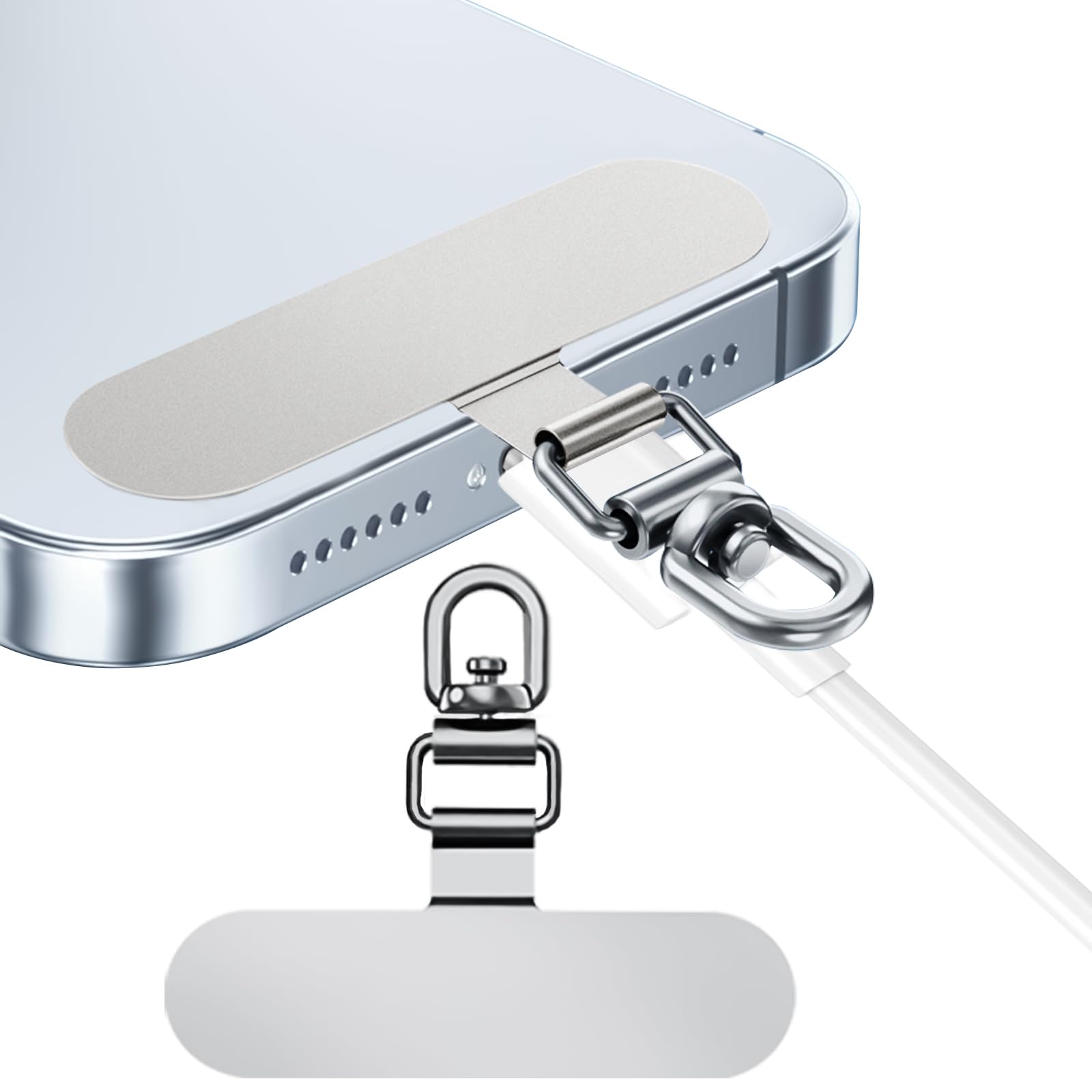 | 【送料無料】KASELIN スマホ ストラップホルダー Dボタン【0.4mm極薄ステンレス材質・傷防止フィルム加工・曲がれ設計 】 携帯ストラップホルダー 充電影響なし 落下防止 丈夫20kgまでの荷重量 軽量 首掛け 斜めがけ 肩掛け iphone android スマホアクセサリ 全機種対応 (シ