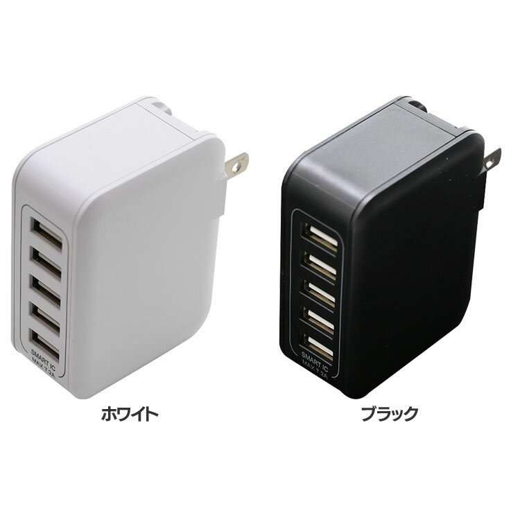 | 5台同時充電 7.2A SmartIC対応 AC充電器 AC充電器 5ポート USB SmartIC 充電 海外使用可能 ホワイト ブラック【D】【B】