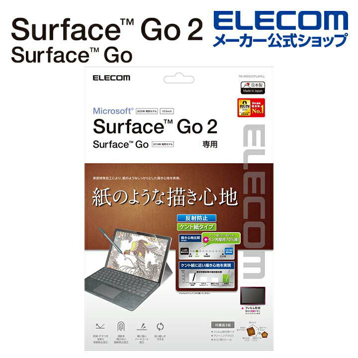 ■材質:接着面:シリコン、外側:PETエレコムダイレクトショップSurface Go 2、Surface Goの液晶画面を傷や汚れから守る、指紋防止紙心地反射防止タイプの液晶保護フィルムです。