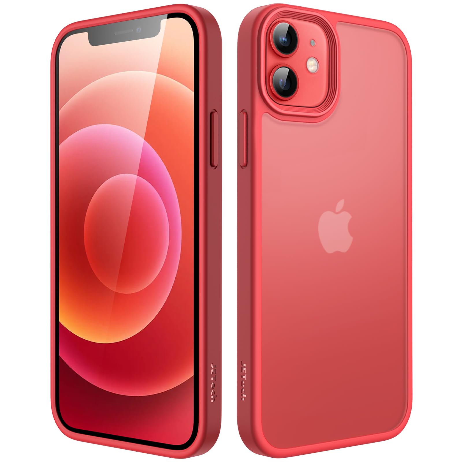 | JEDirect マットケース iPhone 12/12 Pro 6.1インチ 耐衝撃性ミリタリーグレードの落下防止 つや消しの半透明の背面電話カバー 指紋防止 (レッド)