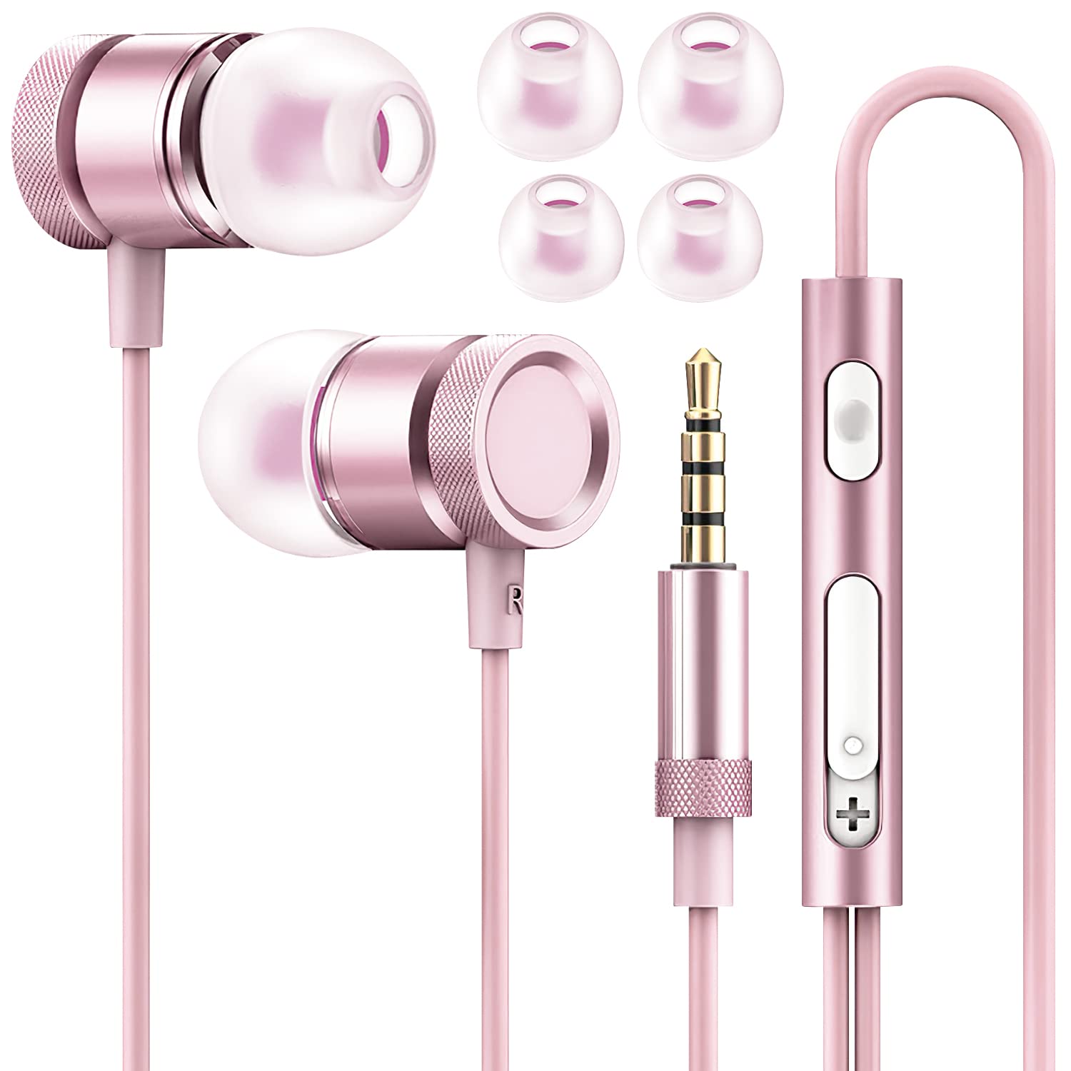 | イヤホン 有線 3.5mm HIFI音質 マイク付き 音量調整 リモコン付き コンパクト ノイズ遮断 重低音 通話可能 高遮音性 音漏れ防止 テレワーク 在宅勤務 会議 Switch/PS4/ZOOM/YouTube/PC/Android/iPhone(Lightning-3.5mmヘッドフォンジャック必要)対応 イヤフォン (ピンク)