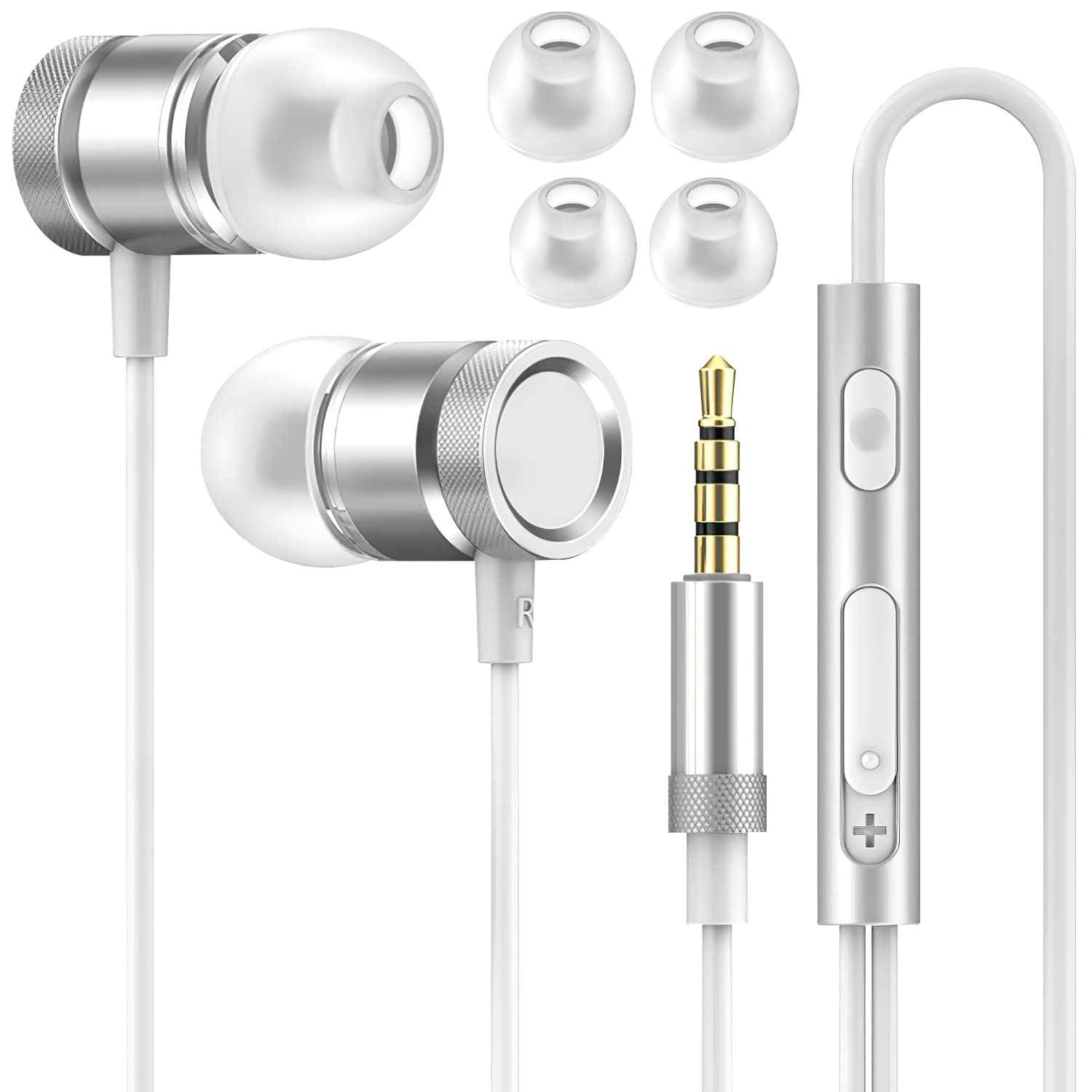 | イヤホン 有線 3.5mm マイク付き HIFI音質 重低音 音量調整 リモコン付き ノイズ遮断 通話可能 高遮音性 音漏れ防止 テレワーク 在宅勤務 会議 Switch/PS4/ZOOM/YouTube/PC/Android/iPhone(Lightning-3.5mmヘッドフォンジャック必要)対応 (シルバー)