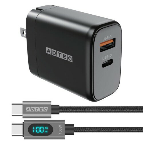 | アドテック PD充電器 65W 2ポート スマートモニタリング LED表示 eMarker搭載 1.2m Type-Cケーブル付属/ブラック/APD-V065AC-BK/SALED