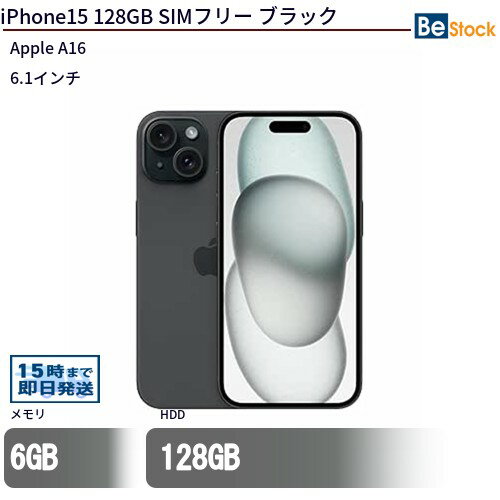 | 中古スマートフォンApple iPhone15 128GB SIMフリー ブラック MTMH3J/A 【中古】 Apple iPhone15 128GB 中古スマートフォンApple A16 iOS Apple iPhone15 128GB 中古スマートフォンApple A16 iOS
